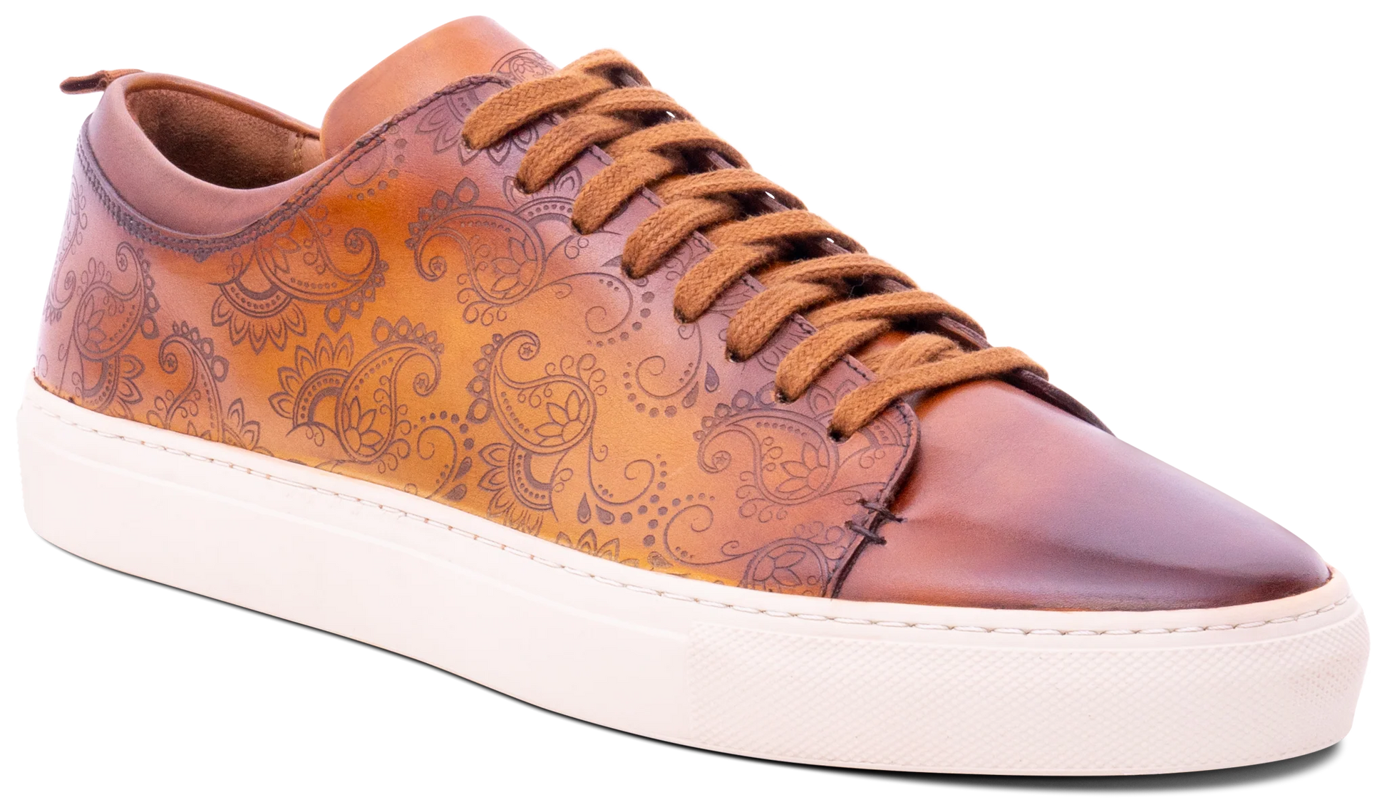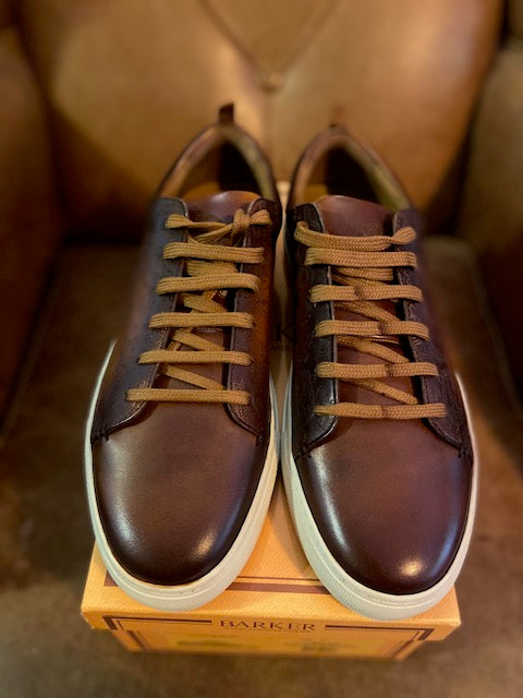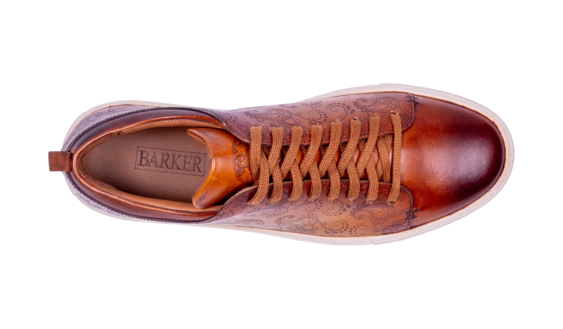 The Barker Paisley trainers are a stylish and unique choice for men looking for a sophisticated yet casual footwear option. Made from high-quality leather with a hand-painted finish, they offer a fine blend of elegance and comfort. The brown colour and classic trainer style make them versatile for both formal and casual looks, perfect for adding a touch of luxury to any outfit.